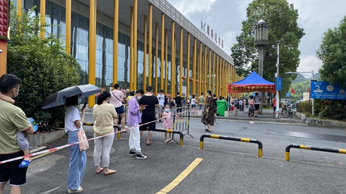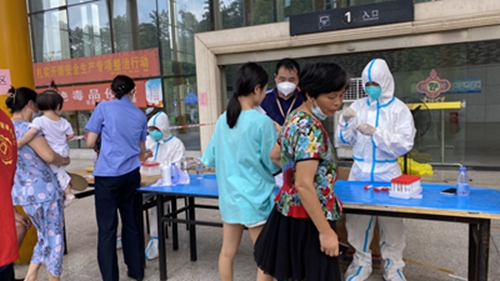 8月5日早上8時(shí)許,筆者在朝陽汽車站看到:從車站西門到迎賓西路一條150余米的“長龍”間隔均勻,在隔離線內(nèi)有序排隊(duì)、慢慢往前挪動(dòng)著。這是益陽湘運(yùn)車站積極配合益陽市城區(qū)全民免費(fèi)核酸檢測(cè)工作的一個(gè)場(chǎng)景。