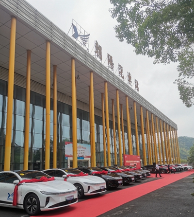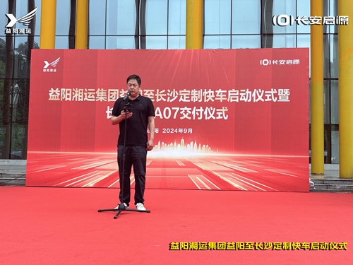 9月3日上午9時(shí)28分,朝陽汽車站前坪整齊停放了14臺掛上大紅綢的新能源長安啟源A07純電動(dòng)車。這是益陽湘運(yùn)集團(tuán)益陽至長沙定制快車啟動(dòng)儀式暨長安啟源A07純電動(dòng)車交付儀式現(xiàn)場。