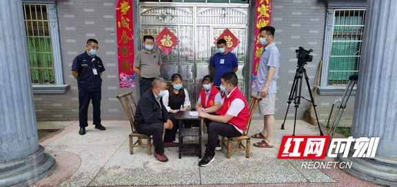 志愿者協(xié)助群眾填寫接種知情書和個人信息登記。