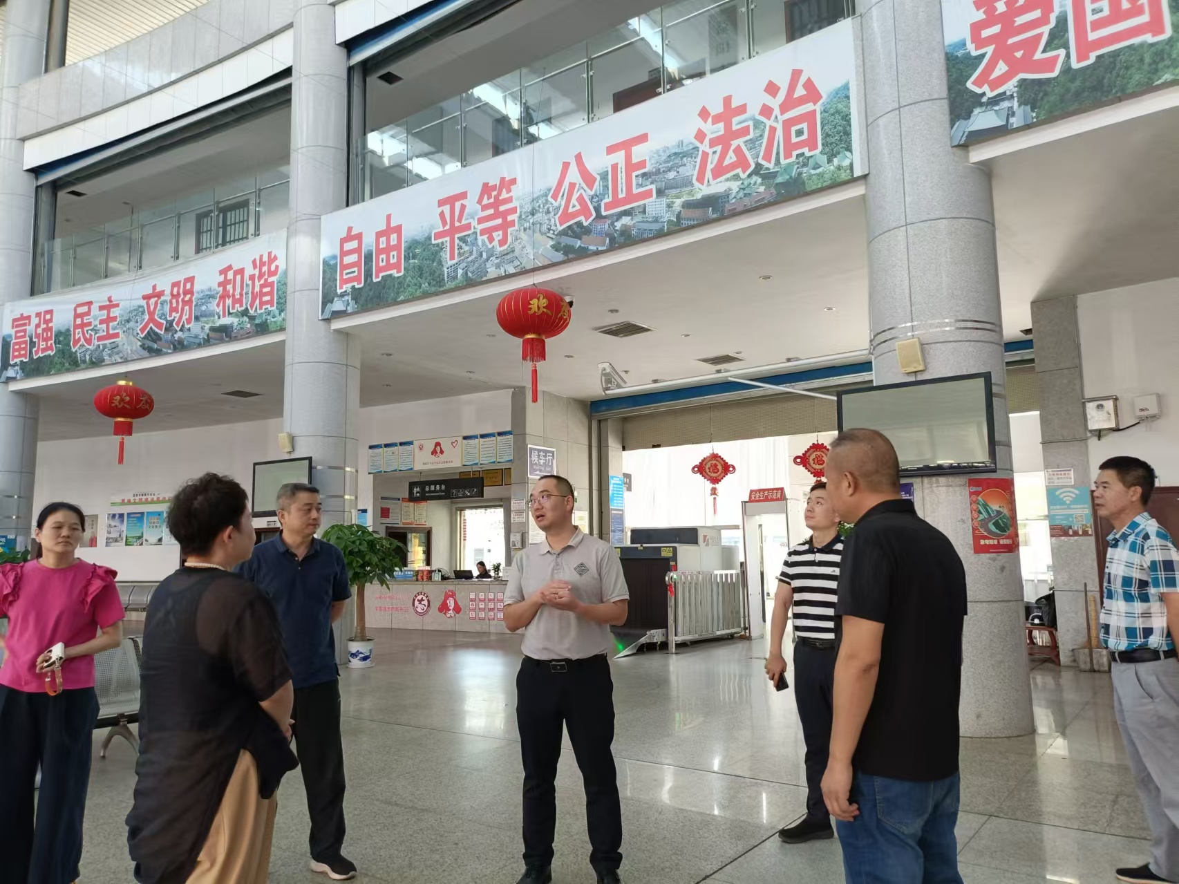 雷鵬一行在候車大廳、售票窗口、三品檢查、安檢等一線服務(wù)崗位,分別了解了客流、售票及三品、安檢流程等情況;認(rèn)真聽取了賀友光關(guān)于國慶期間交通和消防安全管理方案、車輛配備、人員安排、后勤保障等工作匯報(bào)。