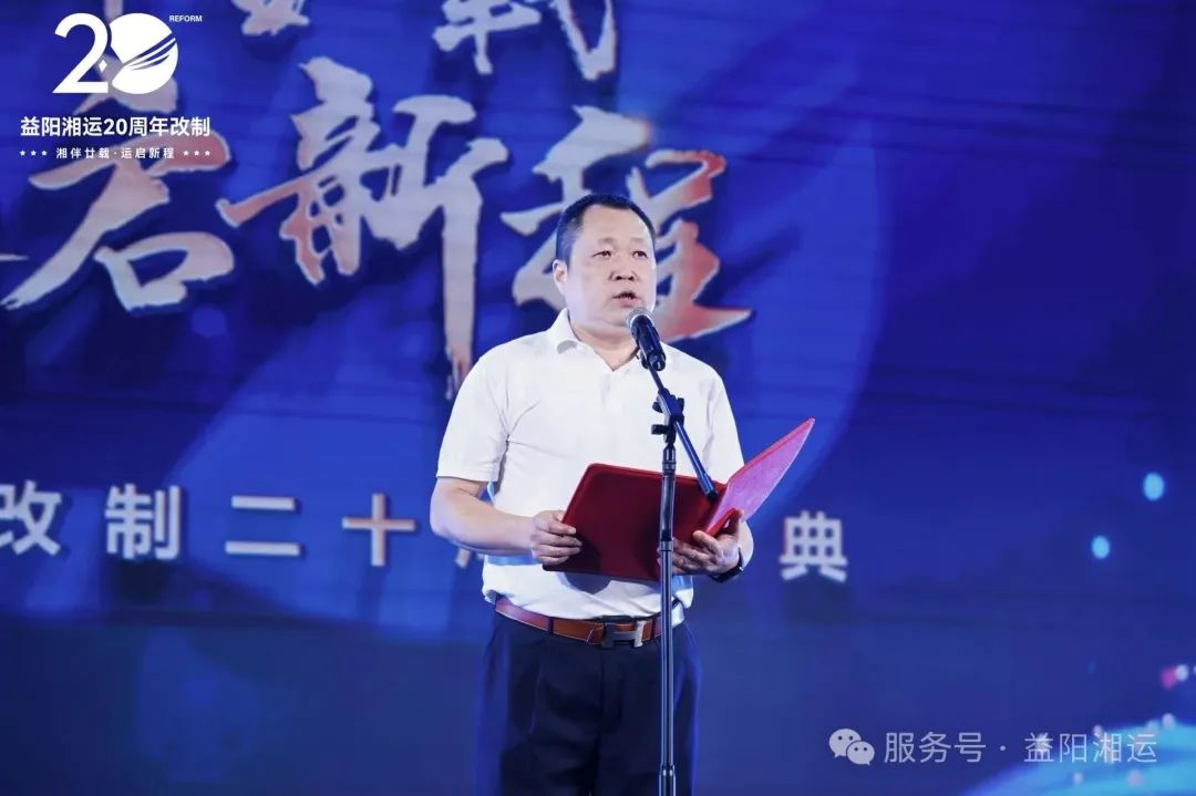董事長郭躍明致辭。他說,最崇高的敬意獻給市委市政府和各級主管部門;最深情的告白,獻給我最親愛的員工朋友們;最真誠的感謝,獻給一路同行的社會各界伙伴,展望未來,湘運將緊扣“交通強國”戰(zhàn)略,以凌云之志,再啟新程。
