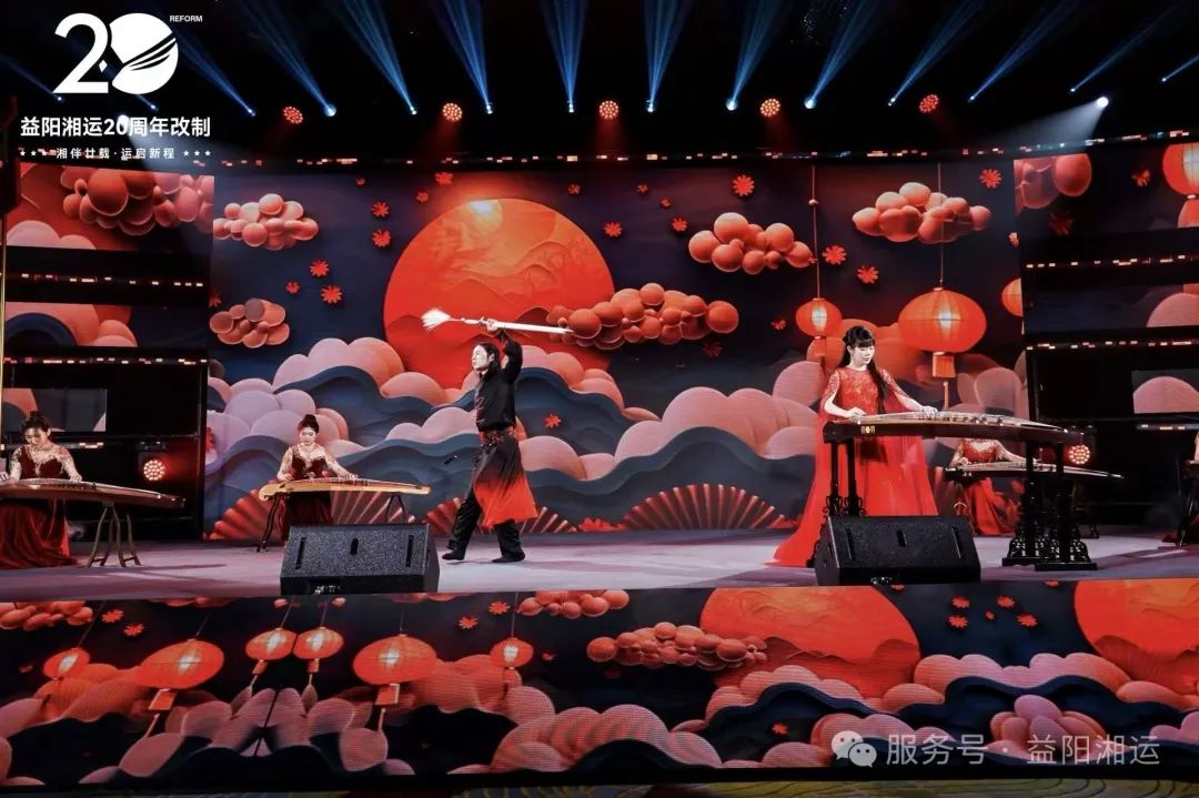 本次晚會聚焦傳統(tǒng)文化與時代新風的交流與碰撞,以“時空長廊”的創(chuàng)意形式貫穿全場,將各項節(jié)目有機串聯(lián)為一個整體。晚會有“湘運破曉”“時代潮涌”“未來征鴻”三大篇章,立體化呈現(xiàn)企業(yè)改制歷程、創(chuàng)新成果與發(fā)展藍圖。晚會在開場歌舞《生日快樂+向著幸福一起來》中拉開帷幕。