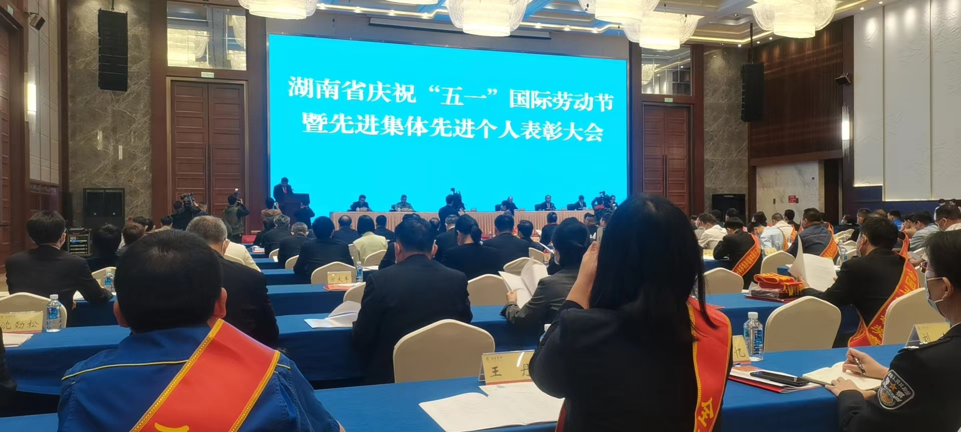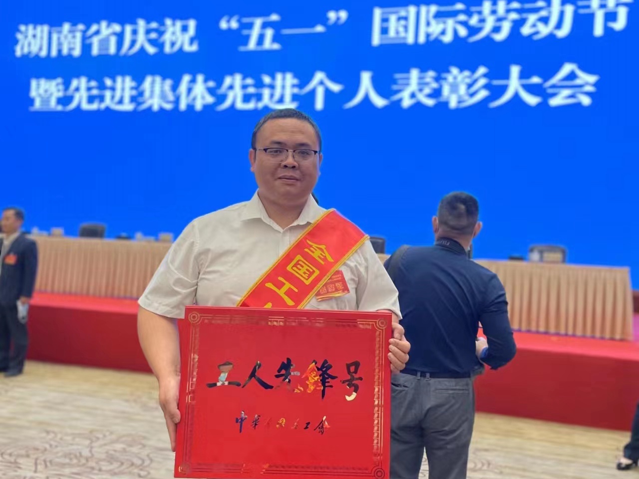當(dāng)天,“湖南省慶祝“五一”國(guó)際勞動(dòng)節(jié)暨先進(jìn)集體先進(jìn)個(gè)人表彰大會(huì)”在湖南賓館隆重舉行。我集團(tuán)檢測(cè)公司副經(jīng)理、檢測(cè)車間主任袁鳴波代表公司出席了表彰大會(huì),并捧回了獎(jiǎng)牌。