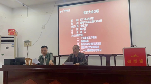 4月28日下午,安化運輸分公司黨支部換屆大會在城南汽車站三樓會議室隆重舉行。公司黨委書記文彩純蒞臨現(xiàn)場指導并講話。