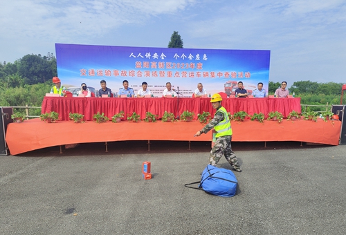 原來這是益陽高新區(qū)開展的2023年度交通運輸事故綜合演練暨重點營運車輛集中查驗活動,由益陽市交通運輸局,益陽高新區(qū)管委、工委會主辦。益陽市交通運輸局副局長肖雄、益陽市交通運輸局直屬事務(wù)中心主任楊恒文等出席,公司副總經(jīng)理王錫龍參加。