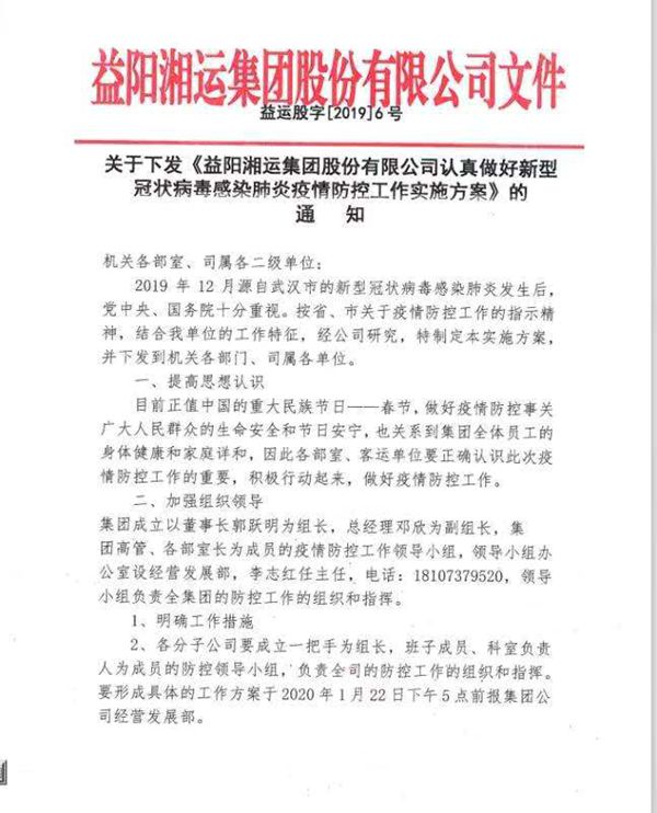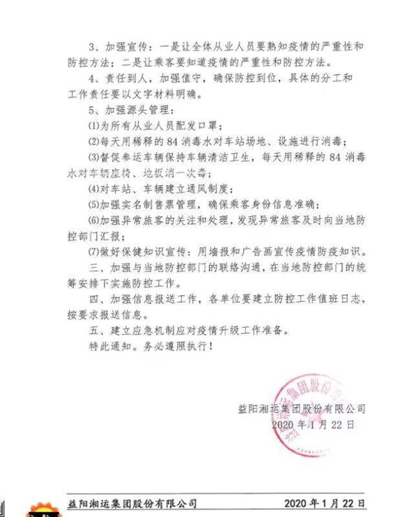 益陽湘運集團股份有限公司正式發(fā)文,對集團疫情防控工作作出了全面部署。