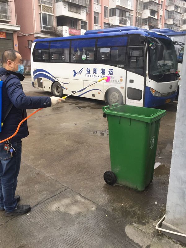 2月1日,公司所屬各車站盡管沒有恢復開班,但是留守值班人員堅持按照當?shù)匾咔榉揽夭块T的工作要求,認真落實公共區(qū)域、家屬區(qū)等場地的消毒和清潔。圖1為安化運輸分公司副經(jīng)理夏遠囑給站場消毒,圖2為梅城客運分公司經(jīng)理李義仁給辦公區(qū)消毒。
