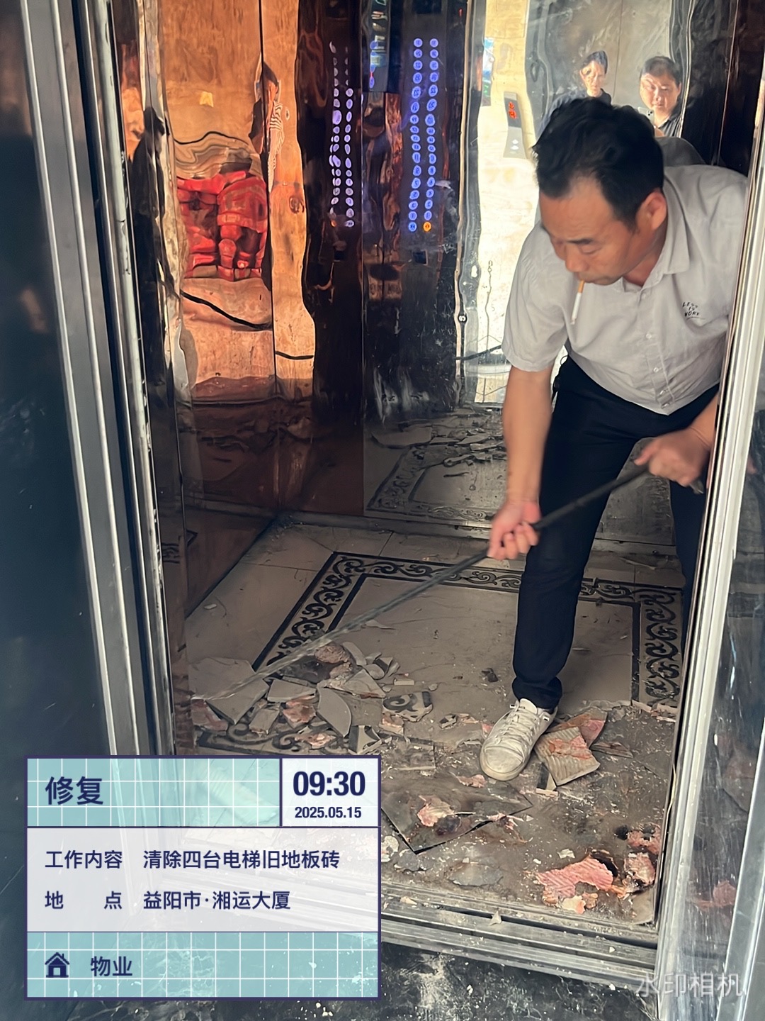 為優(yōu)化湘運(yùn)大廈公共設(shè)施,提升用戶出行安全性與舒適度。5月15日,湖南遠(yuǎn)程建設(shè)集團(tuán)有限公司物業(yè)部按經(jīng)理周琦順要求,對大廈內(nèi)電梯設(shè)施啟動專項改造工程,對三臺客梯及一臺貨梯的陳舊底板進(jìn)行全面更換。改造前,在副經(jīng)理潘宇文與新裝酒店施工方商討對接后,確定由公司物業(yè)工程人員完成舊底板的拆除清理,由酒店方鋪設(shè)全新耐磨地板的方案,同時創(chuàng)新采用"半覆蓋木板"防護(hù)措施,有效降低裝修材料運(yùn)輸對地面的磨損。針對實施過程中樓內(nèi)裝修施工頻繁的情況,辦公室還特別強(qiáng)調(diào)在每部電梯新增半塊可拆卸木板,既保護(hù)新底板免受建材刮擦,又不影響日常使用便利性。(郭燦燦)