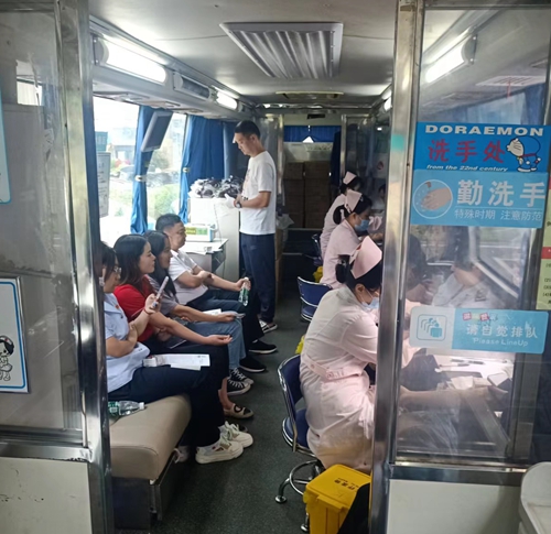 當日一大早,獻血員工在毛斌帶領(lǐng)下集中到達采血點,大部分員工都是第一次參與獻血,既興奮又緊張。填表、體檢、化驗、等候、抽血、休息,所有流程都在醫(yī)護人員的要求和配合下井然有序完成。